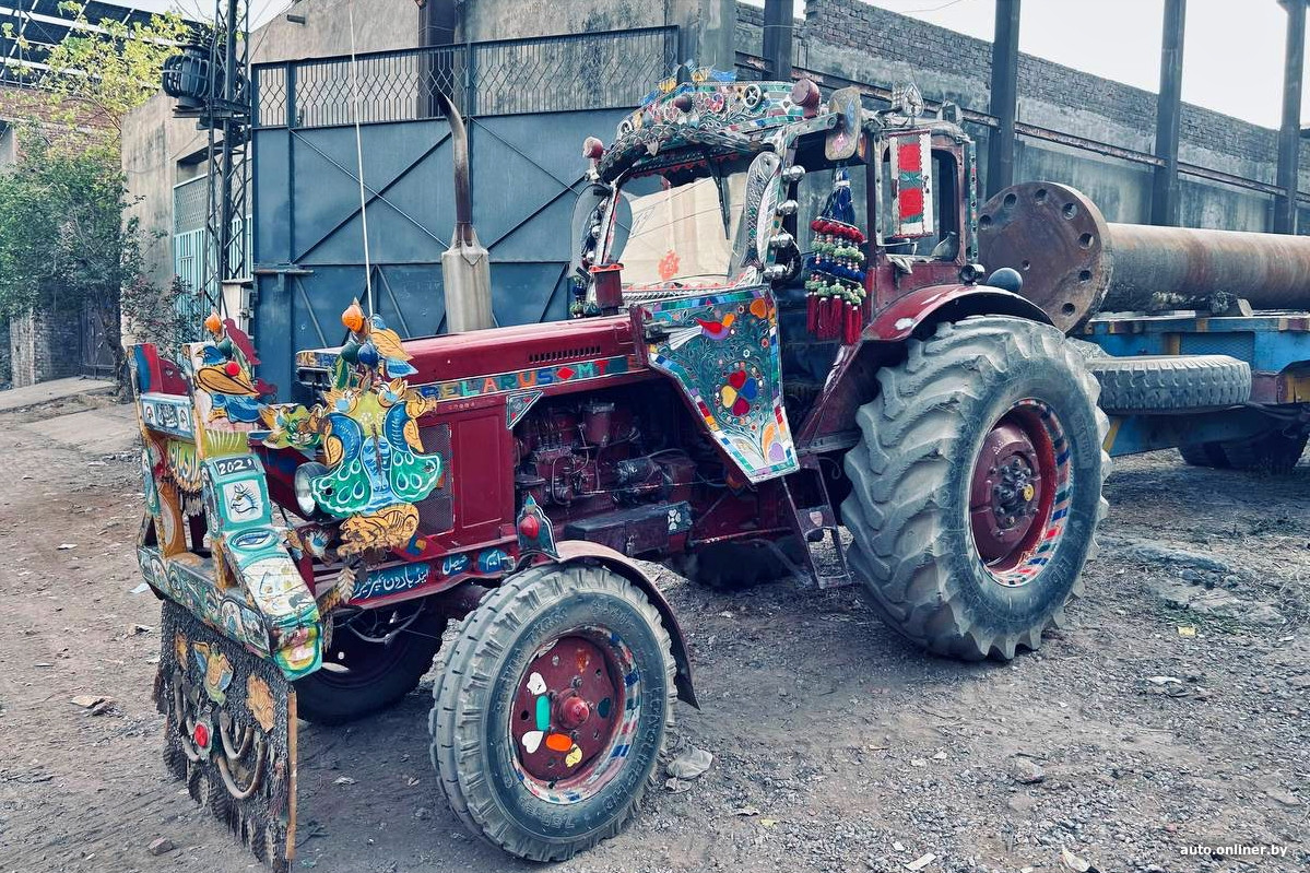 Определить марку и модель помогают характерные очертания и надписи, но некоторые детали скрыты от глаз росписью — это традиционный подход к оформлению грузовиков, тракторов и прочей техники, весьма популярный в Пакистане. Между прочим, искусству росписи грузовиков (а это не только графическое оформление, но и использование различных материалов, прежде всего дерева) уже более 100 лет.