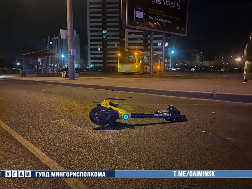 Сегодня ночью на пешеходном переходе в районе пересечения улиц Колесникова и Люцинской в Минске 16-летняя девушка на электросамокате столкнулась с троллейбусом. Тот в результате выехал за пределы дороги.