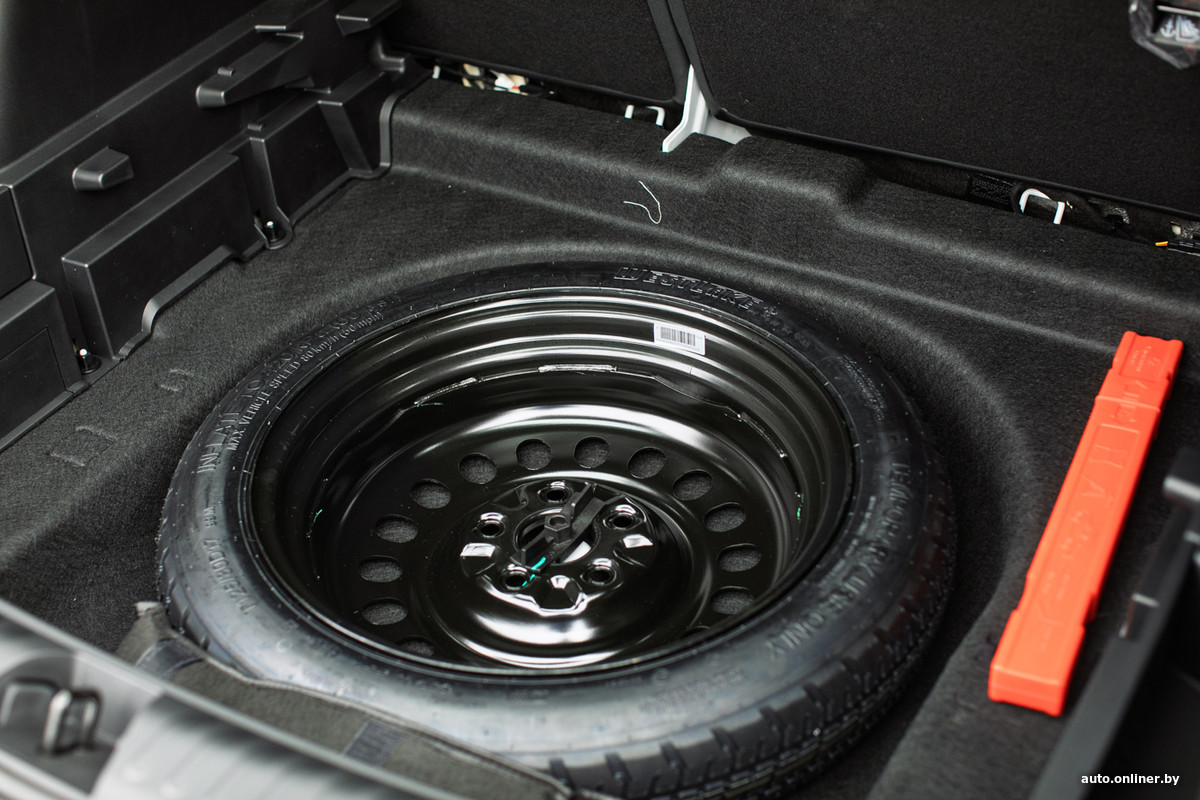 Багажник заслуживает в основном похвал: крышка — с электроприводом, проем довольно широкий, порог опущен, а само отделение — правильной формы, с возможностью установки «пола» в двух уровнях (в верхнем при складывании спинки дивана образуется ровная поверхность). Заявленный объем — от 571 до 1271 литра, при этом в подполье нашлось место для докатки. Можно придраться лишь к пластиковым боковинам, которые легко поцарапать. Зато в нишах справа и слева имеются вместительные карманы.