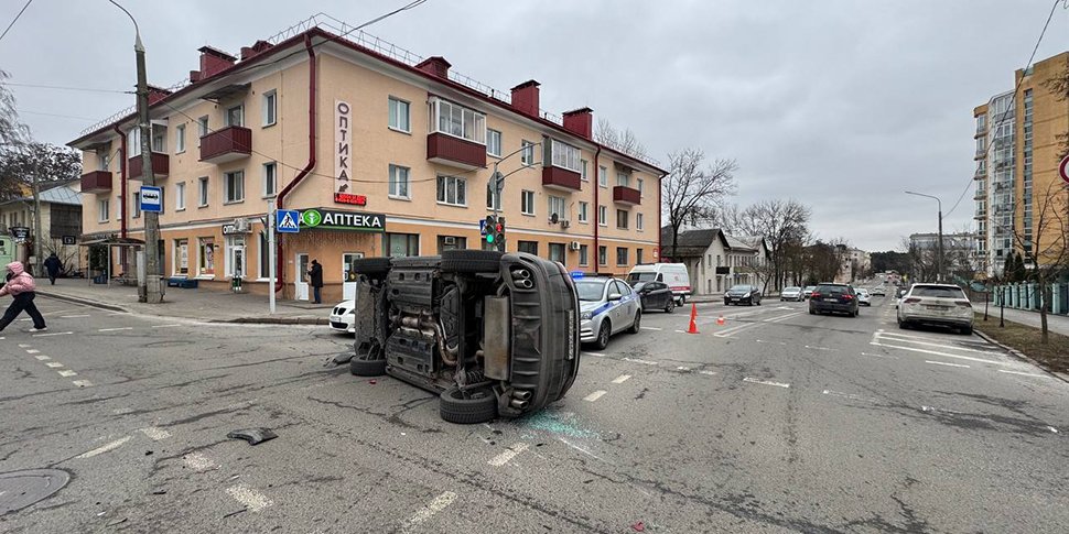 Сегодня Belgee оказался перевернутым на бок на столичном перекрестке ул. Кузьмы Чорного и Калинина. Момент аварии попал на видео.