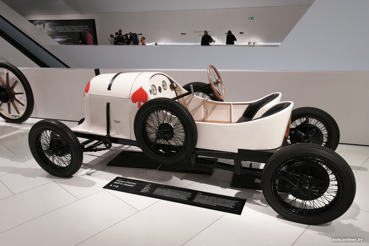 А еще молодой конструктор вынашивал идею создания легкого спортивного автомобиля с малолитражным двигателем. Так в начале 1920-х на свет появляется Austro-Daimler ADS R Sascha. Весил он всего 598 кг, а рядная «четверка» 1.1 (45 л. с.) позволяла ему разгоняться до максимальных 144 км/ч. Финансовую поддержку проекту оказал граф Александр Коловрат-Краковский, страстный любитель автогонок, занимавшийся еще и кинопроизводством. В знак благодарности Порше и назвал машину в честь своего давнего друга — Sascha. В 1922 году сразу четыре таких автомобиля стартовали в 52 гонках, одержав 43 победы — в их числе и первое место в своем классе на знаменитой Targa Florio на Сицилии.