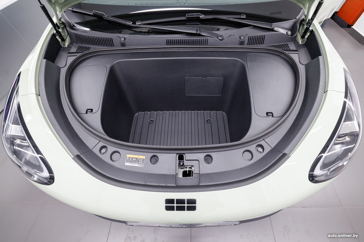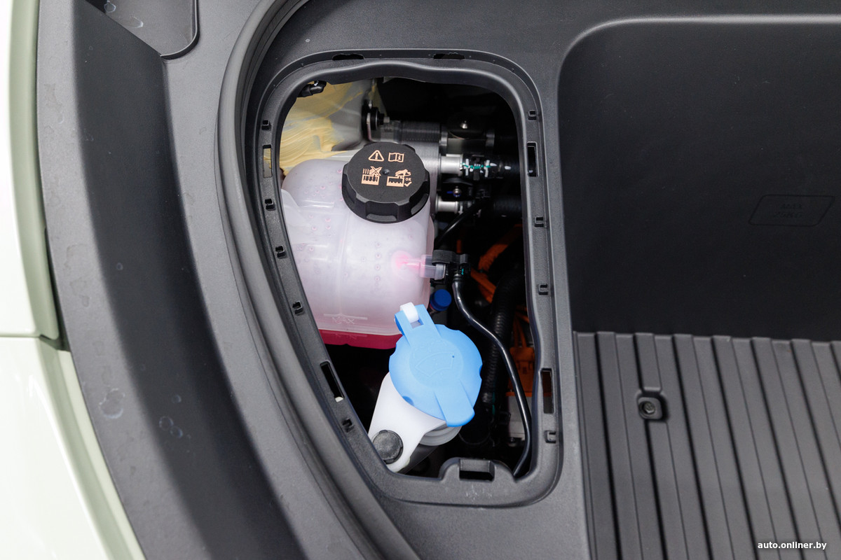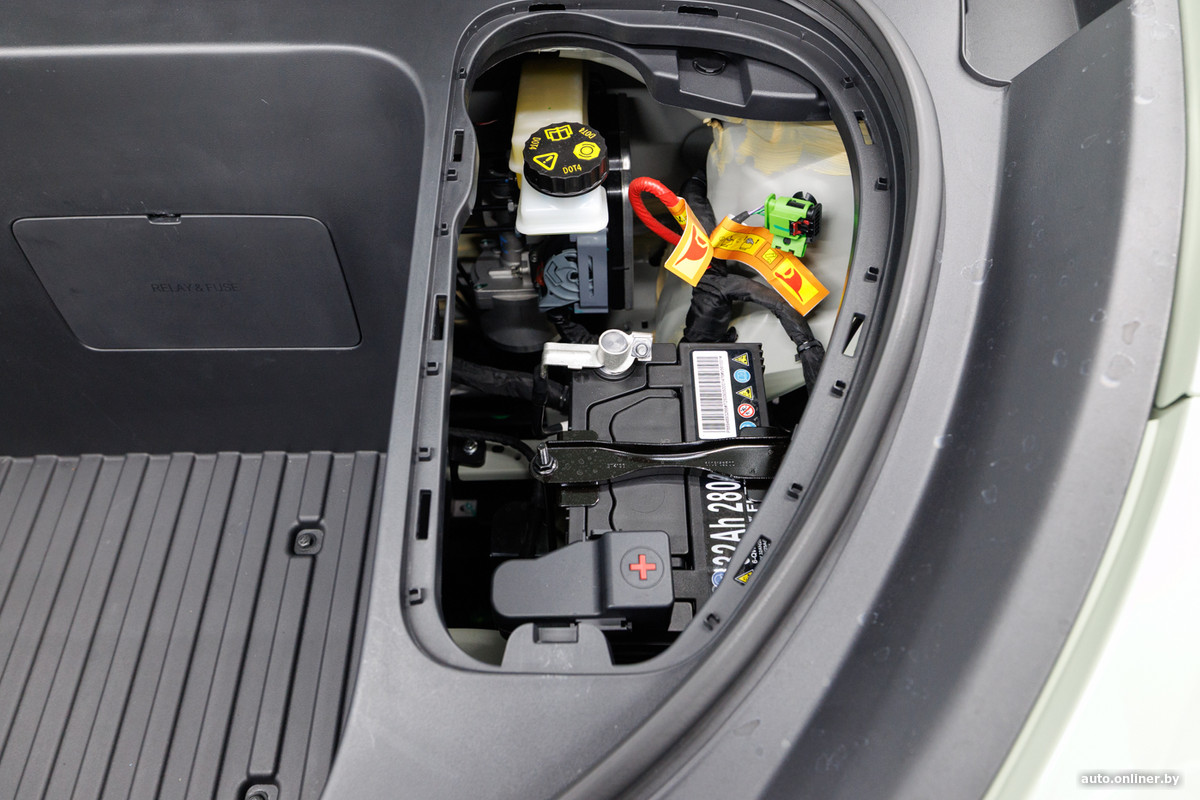 Под капотом есть еще одно отделение на 70 литров. А вообще там все зашито в пластик. Имеется лишь несколько лючков для контроля и доливки технических жидкостей, а также для доступа к аккумулятору на 12 В.