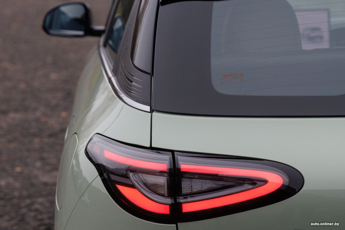 Весь такой округлый, лишенный острых граней и прямых линий, ЕХ2 все же не кажется игрушечным, и к нему не липнет слово «няшный». Возможно, дело в размерах (при колесной базе 2650 мм хетчбэк имеет в длину 4135 мм, что ставит его на границу сегментов В и С), а возможно — в цвете, который формально зеленый металлик, но больше ему бы подошло название «мята» или «зеленый чай».