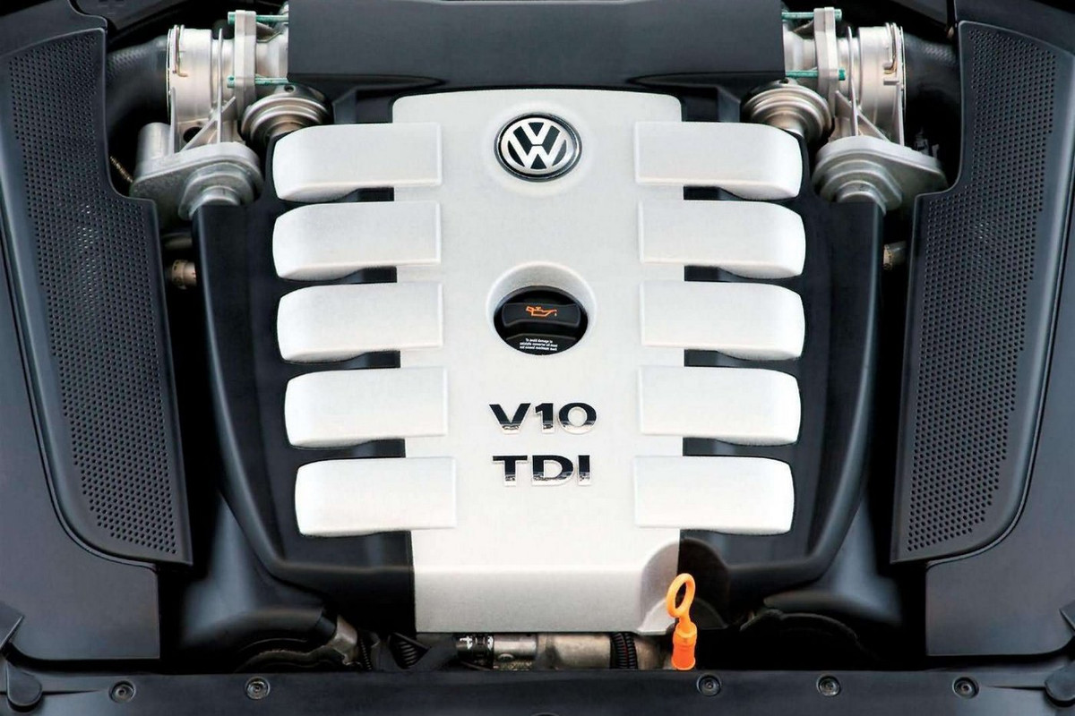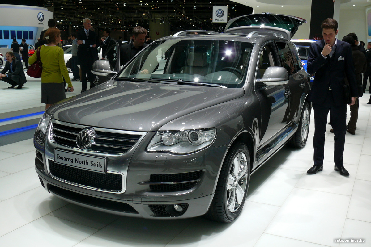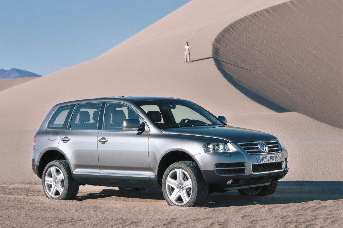 Топ-версия флагманского SUV Volkswagen получила под капот могучий дизель V10 TDI: 5-литровый 10-цилиндровый агрегат развивал 313 л. с. и 750 Н·м крутящего момента, позволяя 2,5-тонной машине разгоняться до 100 км/ч за 7,8 секунды. Максимальная скорость достигала 225 км/ч. Также можно вспомнить появившийся в 2005 году вариант с 6-литровым бензиновым W12 (450 л. с. и 600 Н·м). После обновления в 2006-м для Touareg стал доступен пакет R-Line с более агрессивным обвесом. Производство первого поколения модели продолжалось до 2009 года, было продано свыше 471 000 экземпляров.