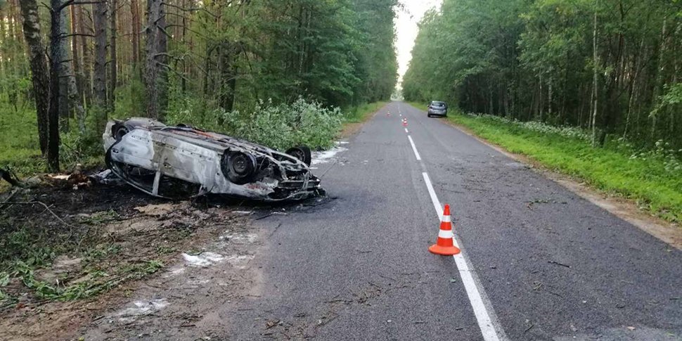 Renault Megan вылетел с дороги, врезался в дерево, после чего автомобиль перевернулся и загорелся. Это произошло в Молодечненском районе вчера около 20:19.