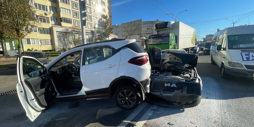 Наш читатель рассказал корреспонденту Onlíner об аварии, которая произошла 7 сентября около 10:50 на пересечении проспекта Машерова и улицы Даумана в центре Минска. Легковой автомобиль, поворачивавший налево, замешкался на перекрестке, а когда возобновил движение, в него врезался мотоцикл, двигавшийся во встречном направлении. Момент ДТП попал на запись видеорегистратора.