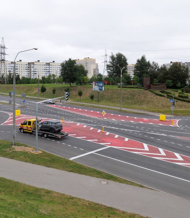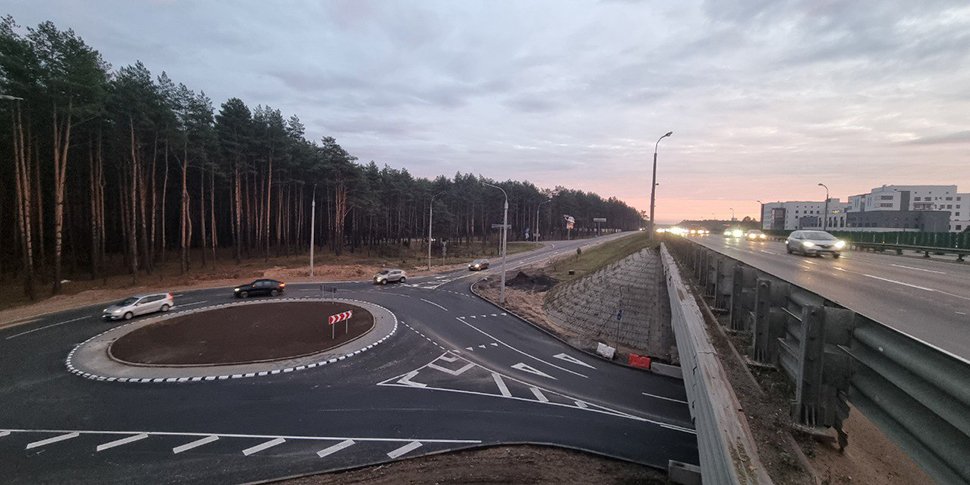 В Минске появился еще один круговой перекресток. Он находится на месте съезда и заезда на внешнее кольцо МКАД, в районе ул. Карвата (рядом также ул. Ваупшасова) с одной стороны и Липковского проезда с другой.